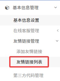 1.進(jìn)入后臺,點擊左側(cè)菜單欄中的【基本信息】,找到并點擊【友情鏈接管理】菜單,并點擊下級【友情鏈接列表】